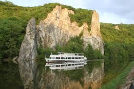 Met toch maar een combiticket voor grot en boottocht, nemen we plaats op Titanic scène hoogte, voorop de plecht dus. De zon schijnt nu nog feller en doordringender dan vanmorgen op onze tevreden gezichten. Niemand maakt ons meer wat, wij deinen mee op de golfjes van la Meuse en verkeren in opperbeste en ontspannen vakantiestemming.
