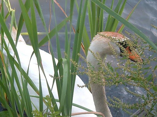 Hun ontbijt, lunch en diner bestaat meestal uit waterplanten, die gezocht worden in ondiep water. Hierbij komt hun lange hals goed van pas. Regelmatig zie ik zwanen zonder kop!