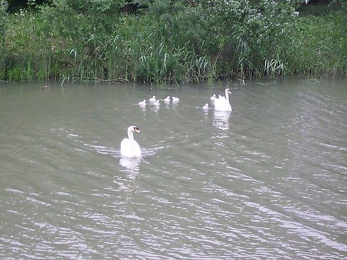Zwanen (eigenlijk knobbelzwanen) zijn elegante vogels met een lange hals. Ze zijn zwaargebouwd en stijgen moeizaam op van het water. Daarbij trappelen ze en slaan ze krachtig met de vleugels. Ze hebben een onhandige, waggelende gang maar schreiden desalniettemin elegant door mijn watertje!