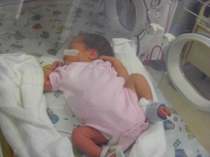 Toen een emotionele Jocelijne en blije Olaf en Isa. Snel naar het Raigmore Hospital in Inverness om ons piepkleine nichtje en kleindochtertje te bewonderen. Heel kwetsbaar klein lag ze daar in haar veilige glazen kastje (couveuse).