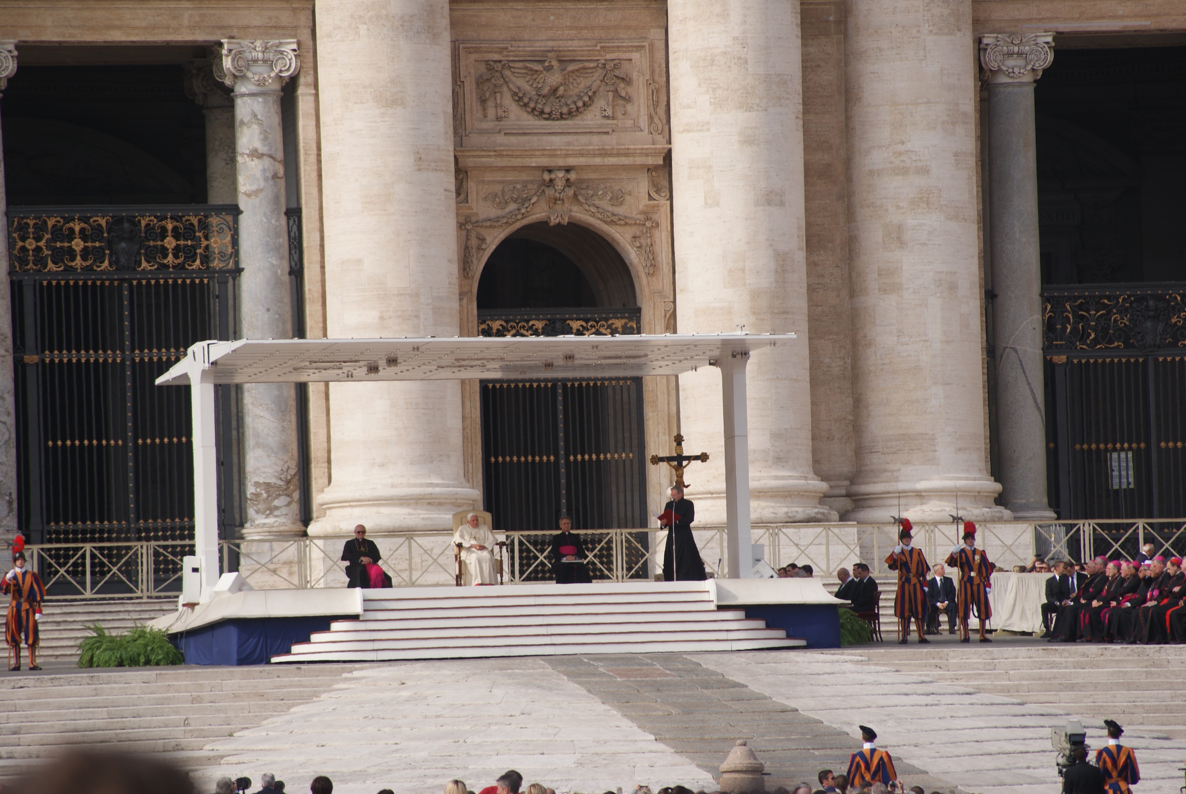 En we lopen, ja heus!, in één ruk door naar het Vaticaan waar we nog een dienst meemaken ook!