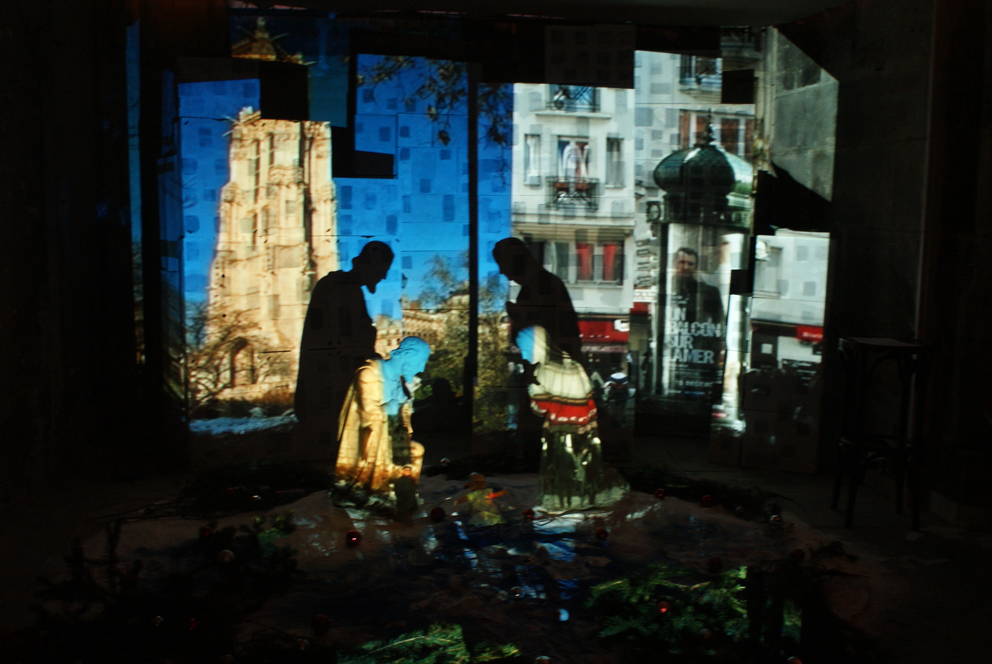 We hebben overigens ook nog een prachtige digitale presentatie gezien van het kerstverhaal in een kerk ergens in Parijs. Het oude verhaal vermengd met beelden van nu. De kerststal in het midden daarvan. Erg indrukwekkend.