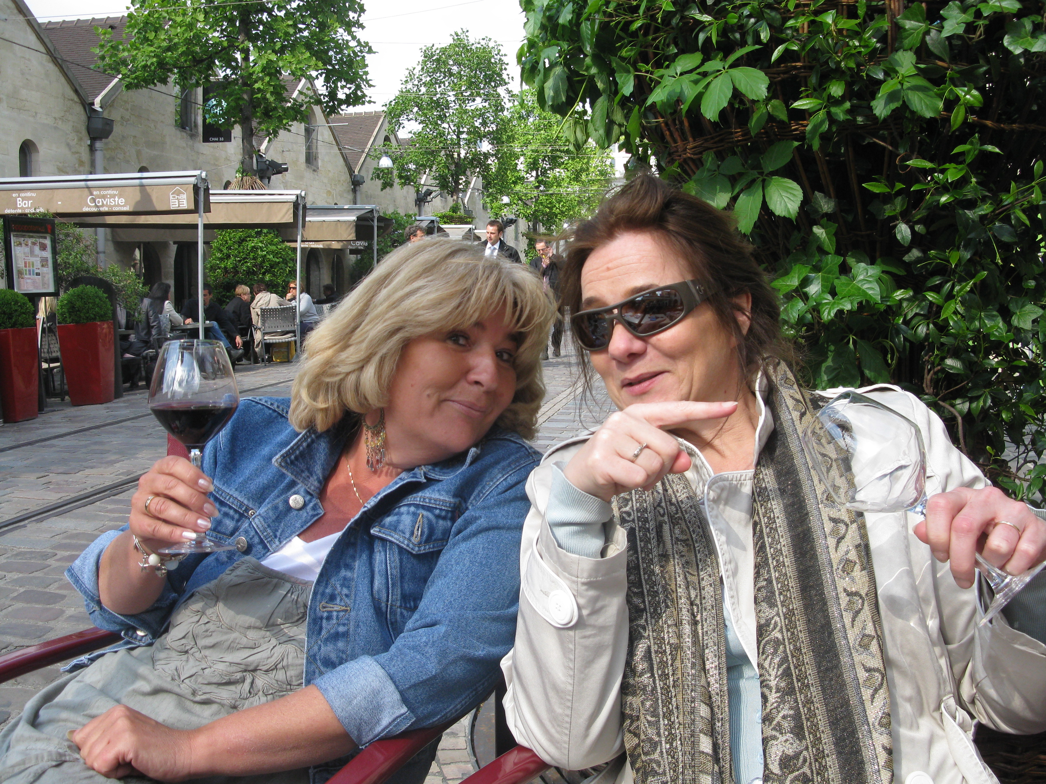 Een leuke ontmoeting met Parijs doorfietsende zus Joyce en zwager Hans in Bercy Village. De monumenthuisje van dit huidige winkelcentrum waren vroeger opslagruimtes van de grootste wijnmarkt in de wereld. Bercy was heel vroeger ook een op zichzelf staand dorpje. Nu is het een plek in het grote ParijsIMG_5231IMG_5233