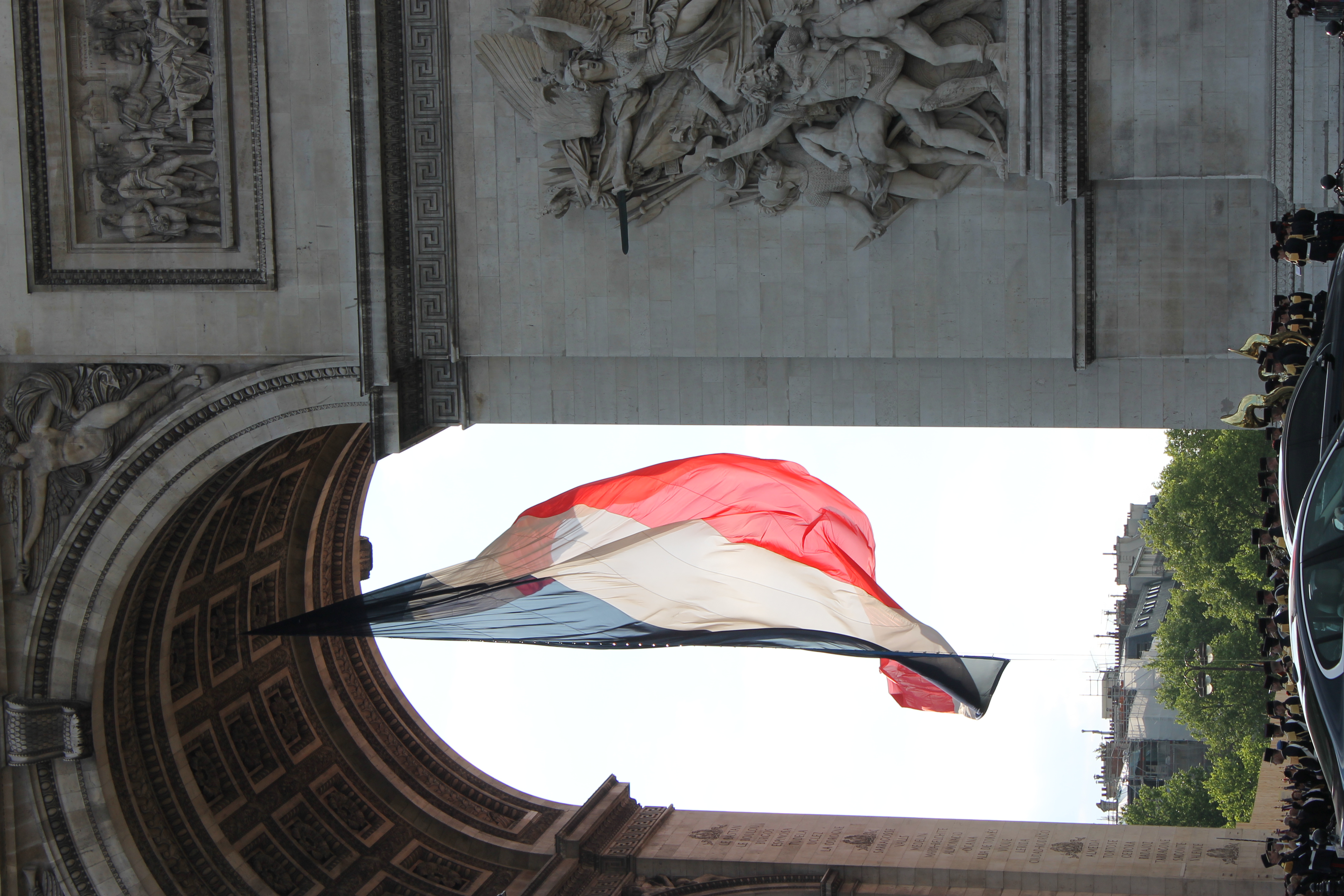 En we hebben de vlag halfstok zien hangen onder de Arc de Triomph en de herdenkingsceremonie aldaar meegemaakt.